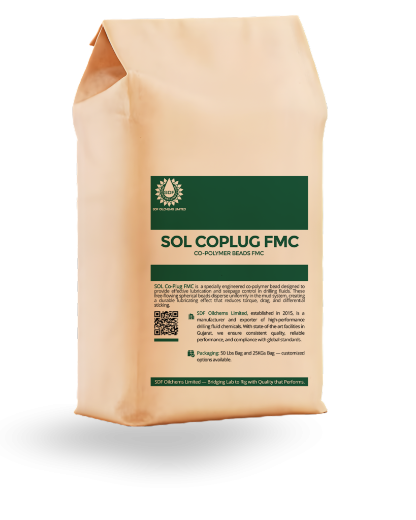 SOL CoPlug is a specially engineered co-polymer bead designed to provide effective lubrication and seepage control in drilling fluids. These free-flowing spherical beads disperse uniformly in the mud system, creating a durable lubricating effect that reduces torque, drag, and differential sticking. It is highly effective in challenging drilling conditions, especially in hard rock formations and extended-reach wells.