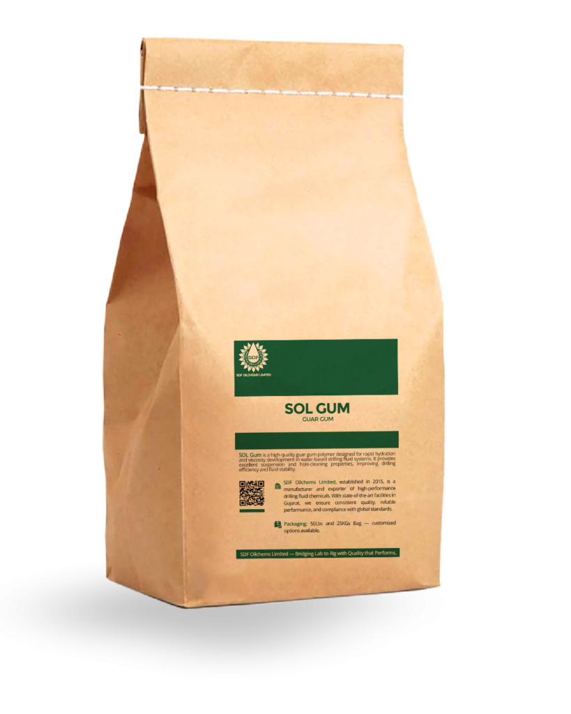 SOL Gum is a high-quality guar gum polymer designed for rapid hydration and viscosity development in water-based drilling fluid systems. It provides excellent suspension and hole-cleaning properties, improving drilling efficiency and fluid stability. Its natural polymer composition ensures cost-effective performance across a wide range of drilling conditions